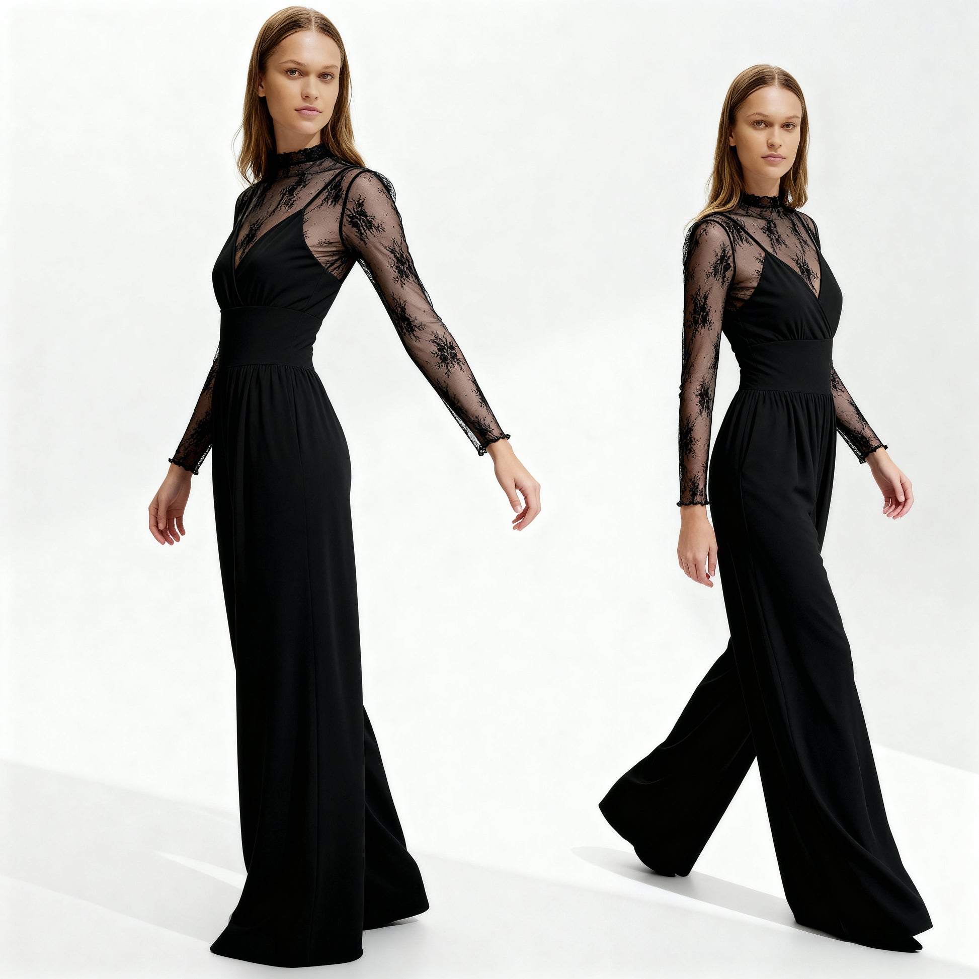 Ein edles 2-Piece, das bequem sitzt und sofort chic aussieht. Spitzen-Top kombiniert mit warmem, praktischen Jumpsuit – perfekt für Alltag und Ausgehen.